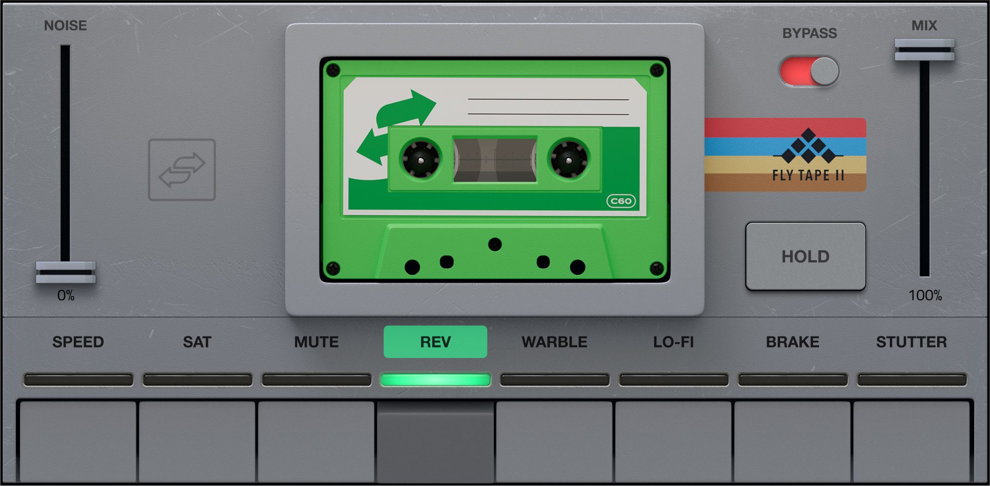Fly Tape II introduces an intuitive, easy-to-explore user interface that features retro button controls and eight independent tape-style modes—with additional sub controls per mode to mangle, stretch, lo-fi, and retro-fly your sound.